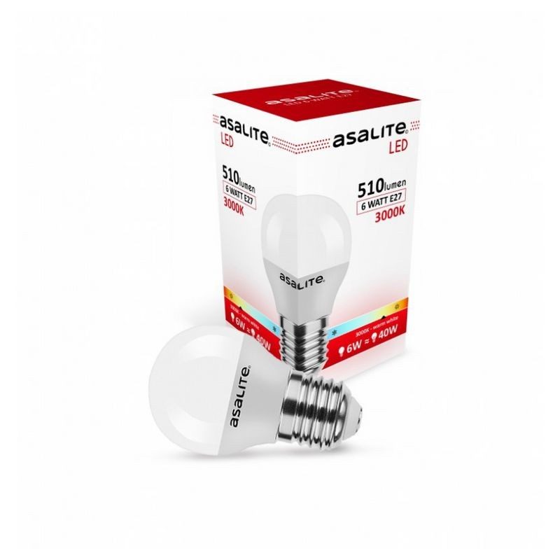 Bec LED Asalite G45 mini glob E27 6W 3000K (510 lumeni)