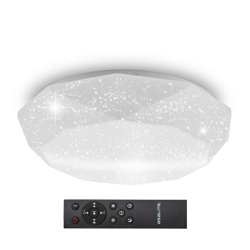 Asalite lampa de tavan cu surse de lumină LED este o soluţie decorativă şi de lungă durată pentru o iluminare uniformă, estetică şi plăcută ochiului în casa dvs. datorită cipurilor LED şi driverului de înaltă calitate şi fiabile, precum şi formei diamant elegante şi abajurului cu model stelat. Atât temperatura de culoare, cât şi luminozitatea lămpilor de plafon CCT pot fi reglate între 3000K şi 6500K cu ajutorul telecomenzii incluse în pachet.